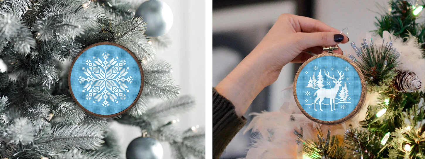 One of the most delightful ways to bring festive cheer is by creating handmade Christmas tree ornaments. These cross-stitched designs can feature winter animals, snowflakes, or holiday symbols like reindeer or sleighs. They add a special, personal touch to the Christmas tree and make wonderful small gifts.