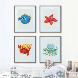 • Sea Set – Fish, Octopus, Star, Crab shell Cross stitch pattern