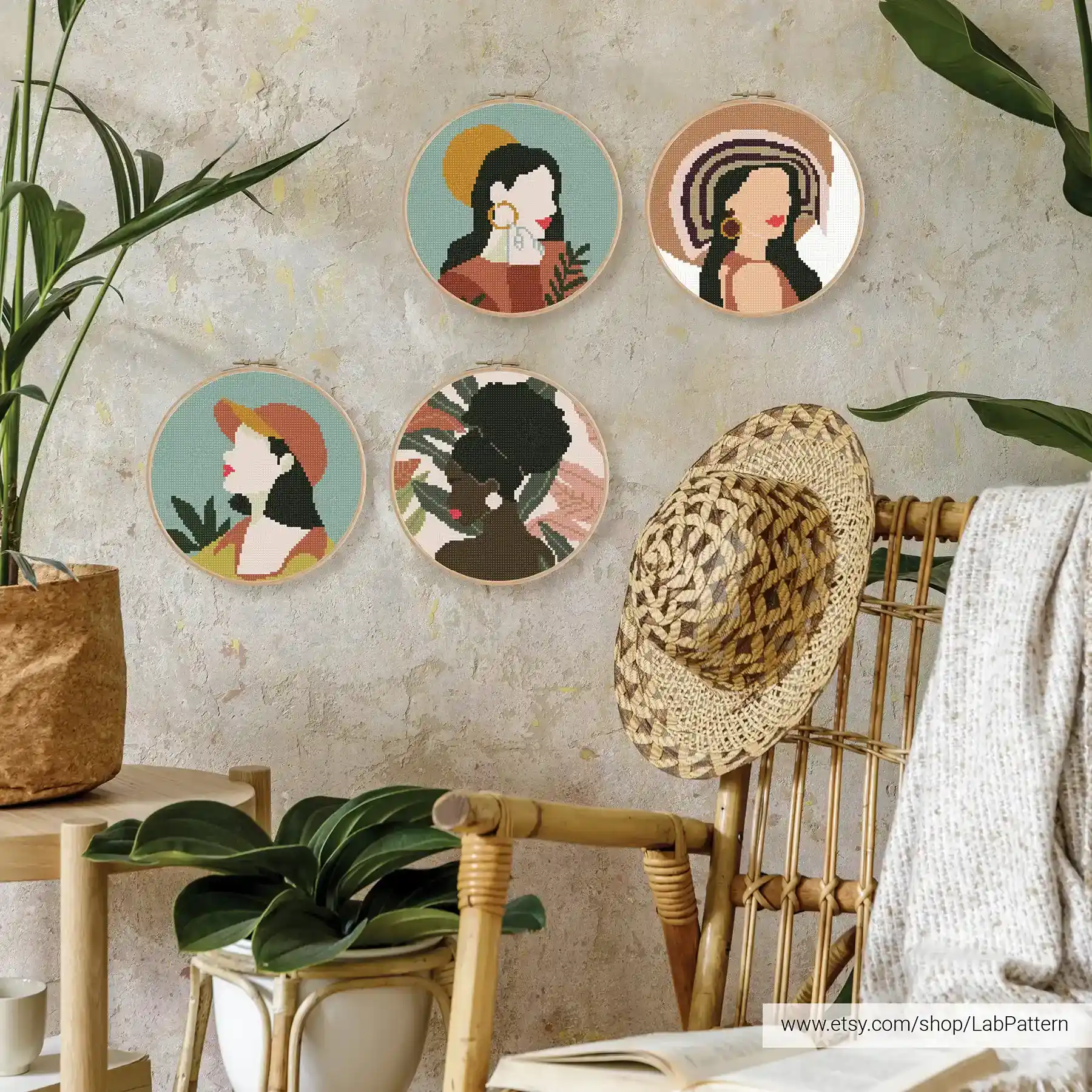 • Boho Style woman set Cross stitch pattern