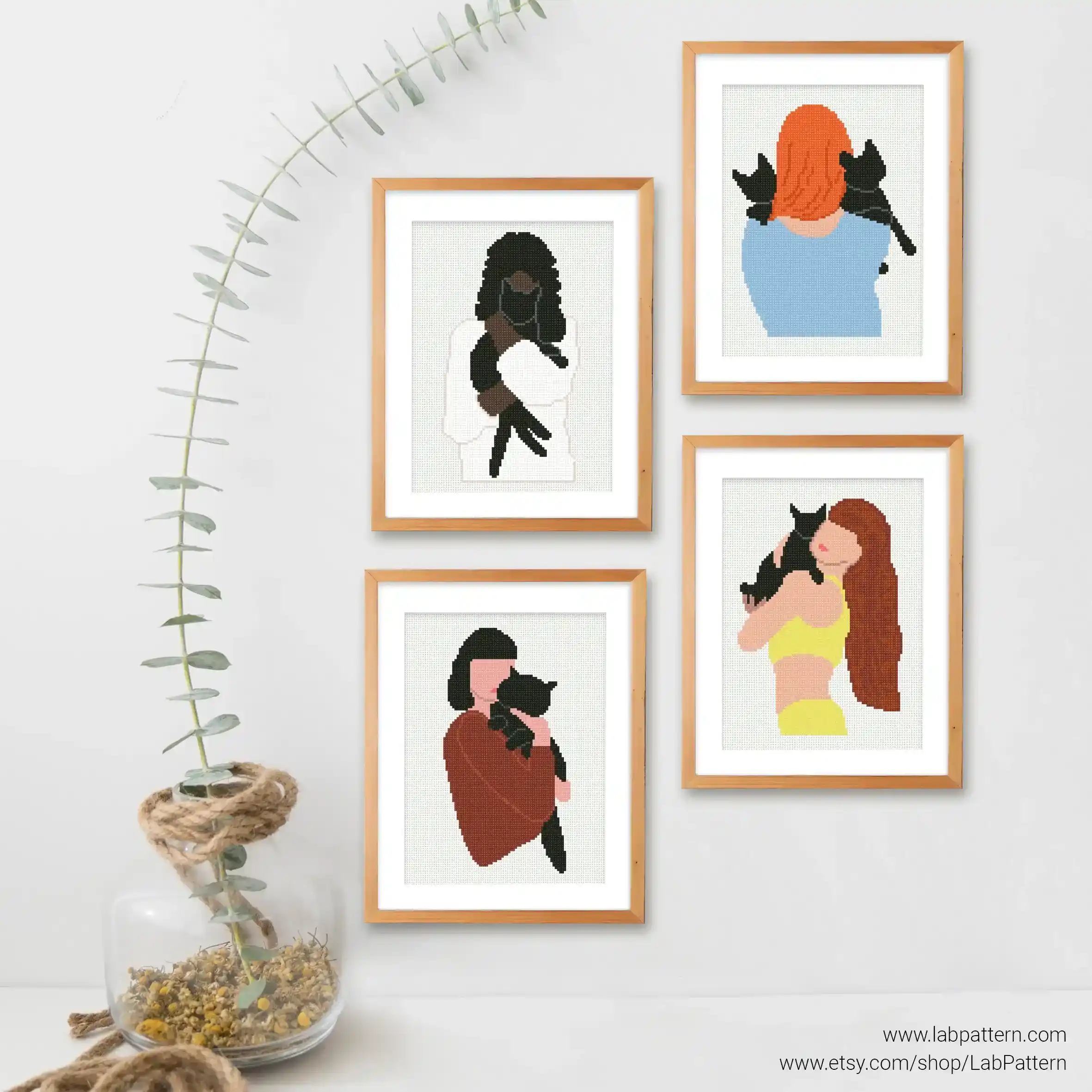 • Bundle of 4 woman boho style Cross stitch pattern