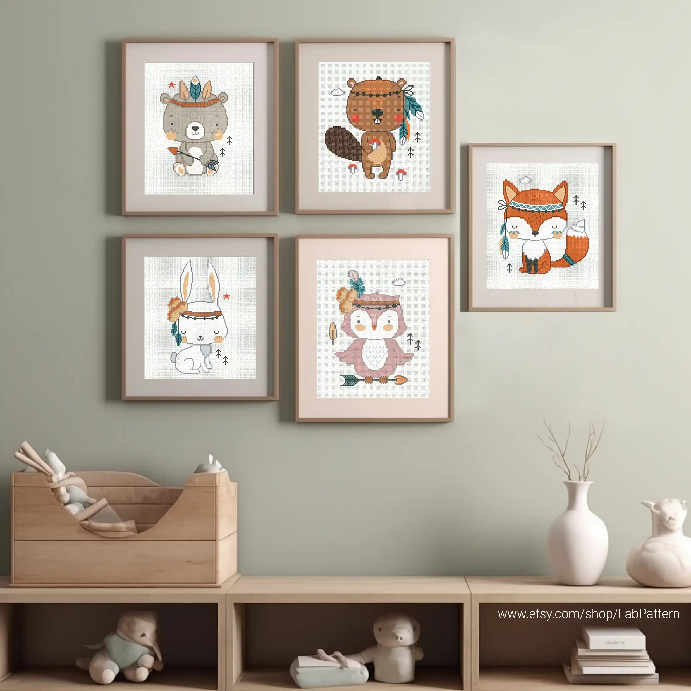 Bundle of 5 animals Boho style aesthetic Cross stitch pattern