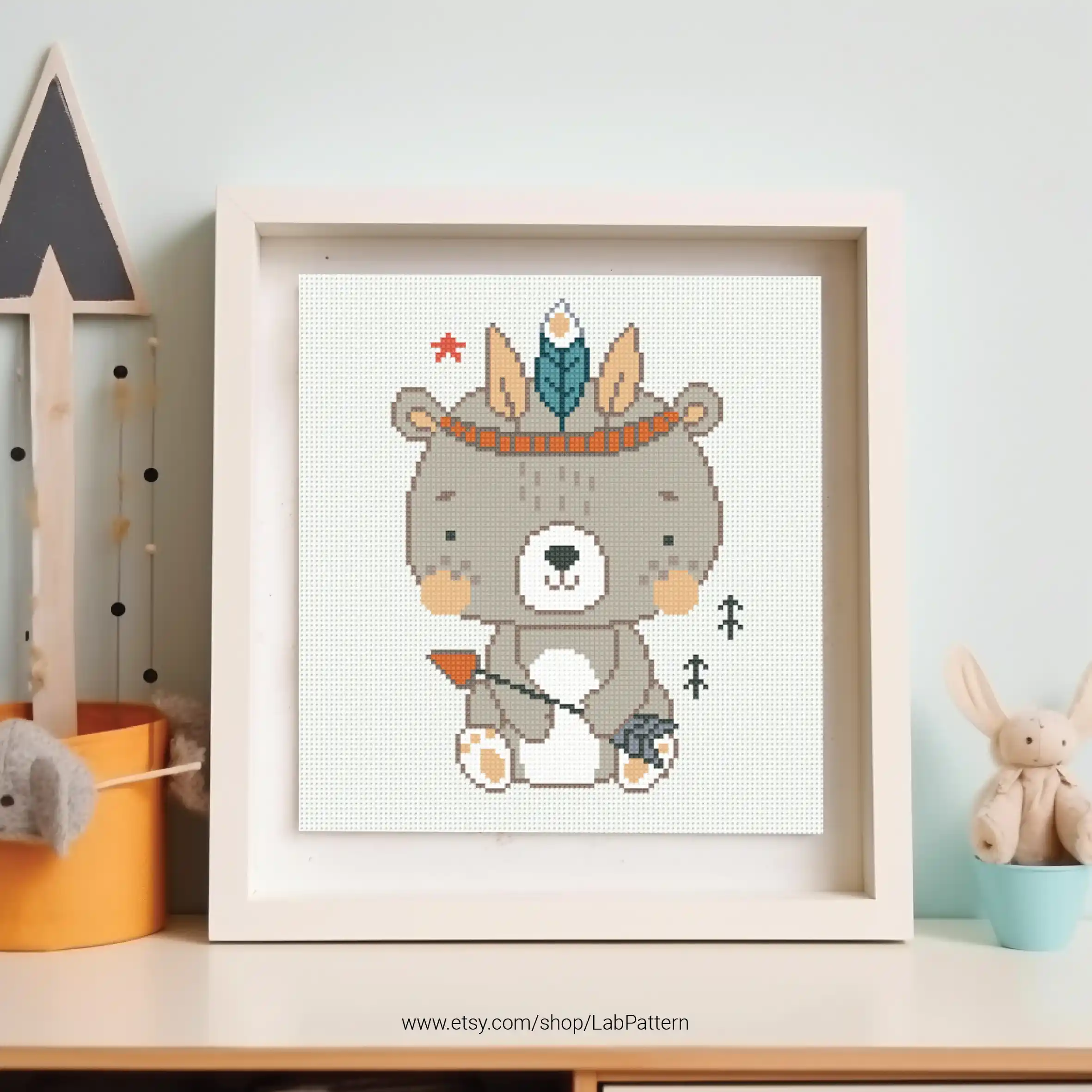 Bear Boho Style aesthetic mini Cross stitch pattern