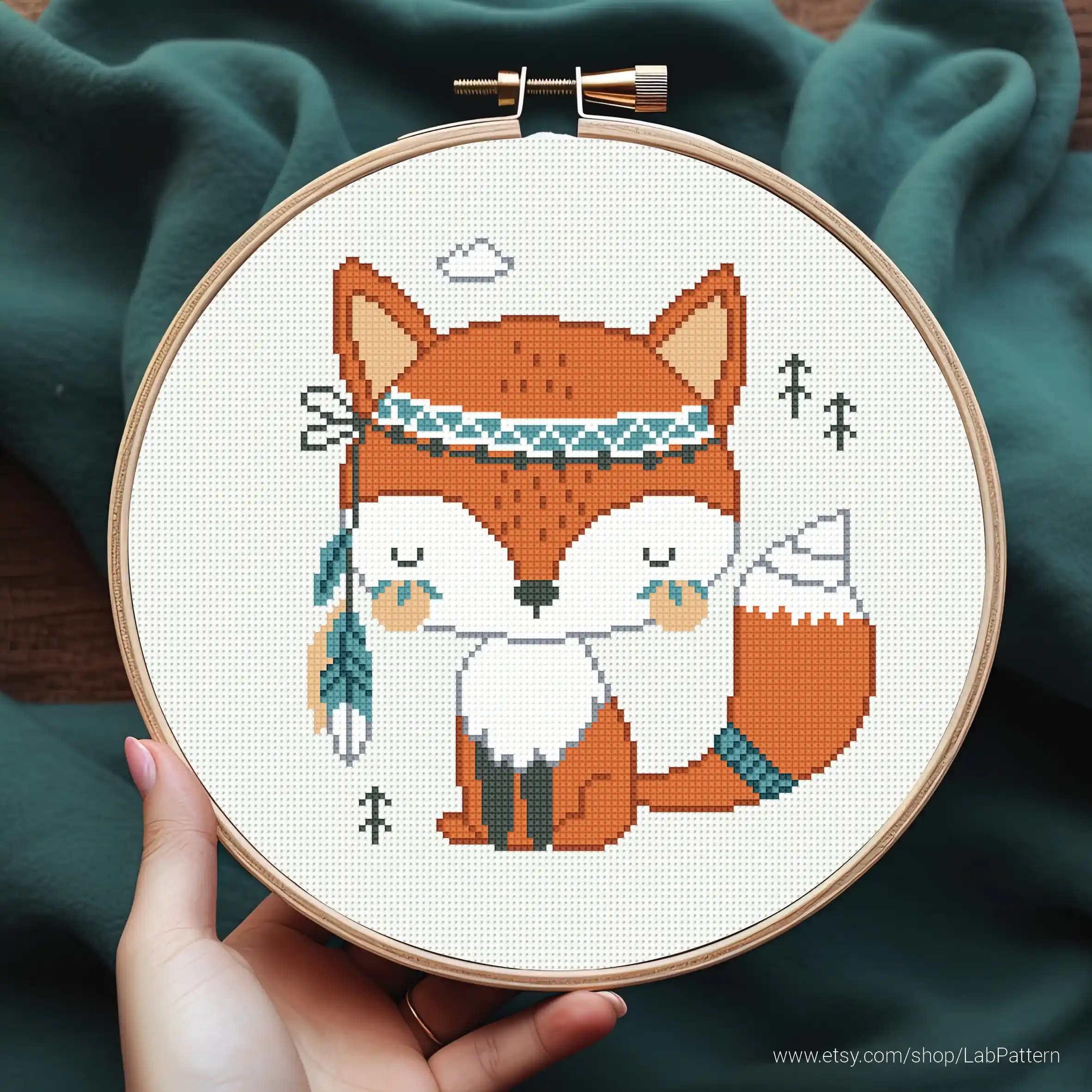 • Fox Boho Style aesthetic mini Cross stitch pattern