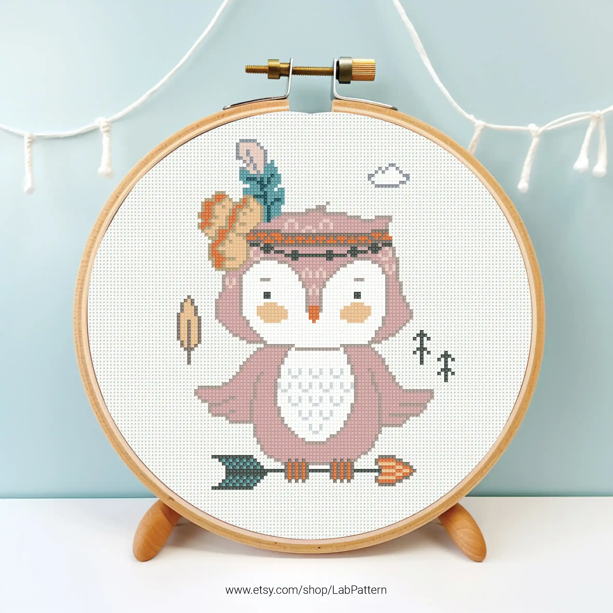 • Owl Boho Style aesthetic mini Cross stitch pattern