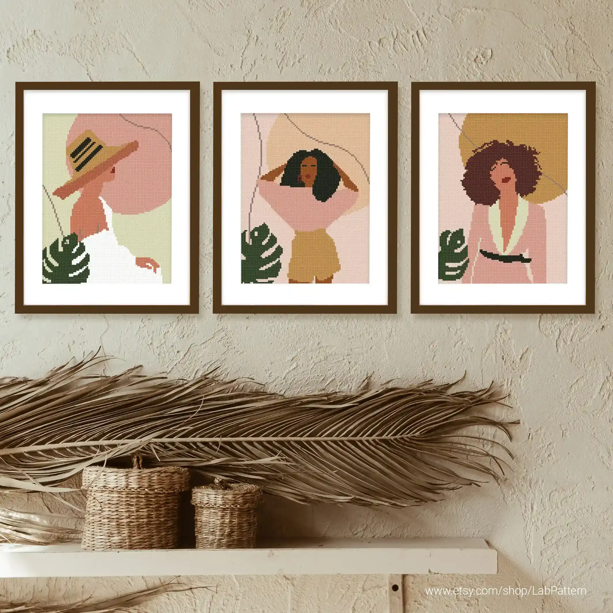 • Bundle of 6 woman boho style Cross stitch pattern