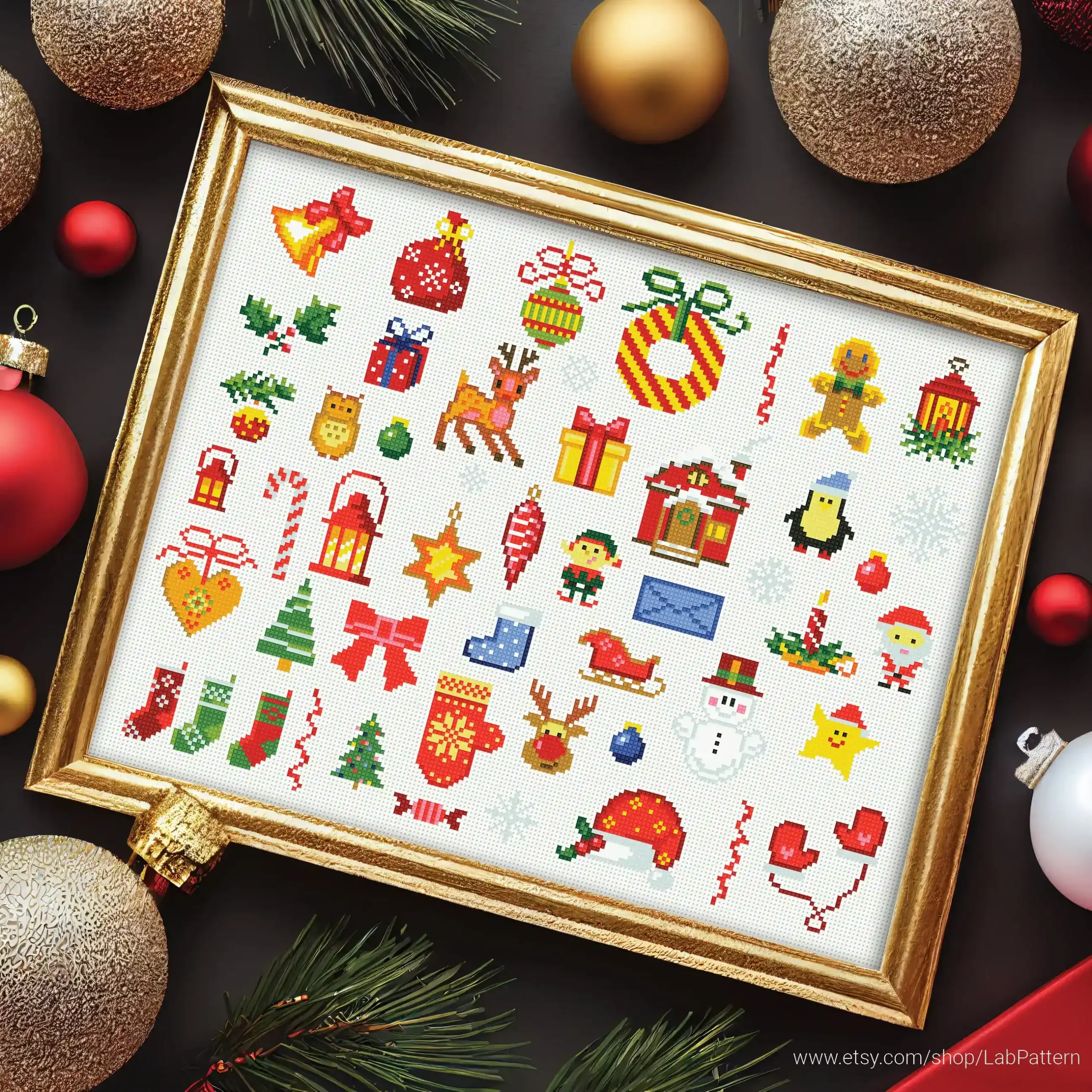 • Mini Christmas Miniature small ornaments Cross stitch pattern