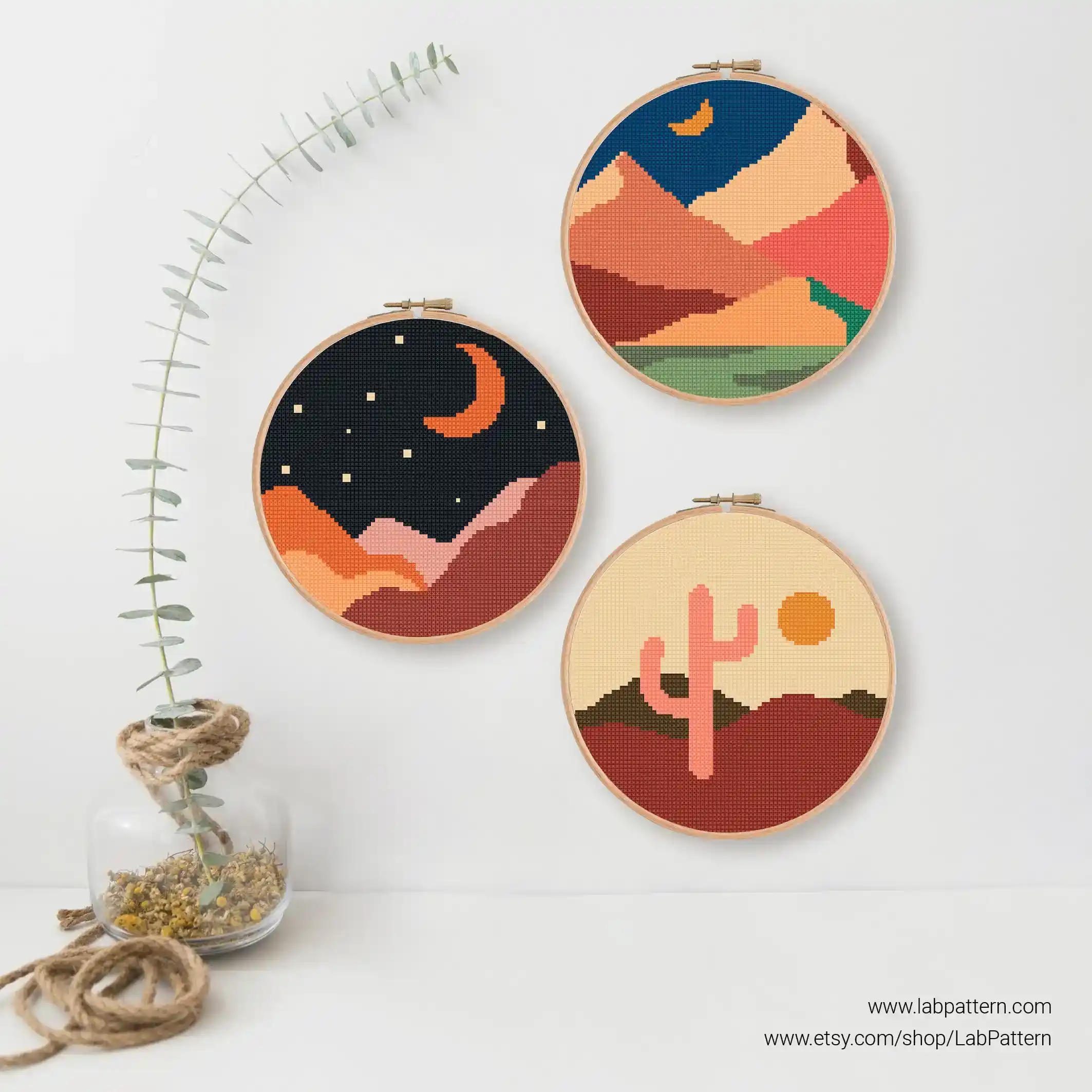 Boho Landscape Bundle of 12 modern Cross stitch pattern