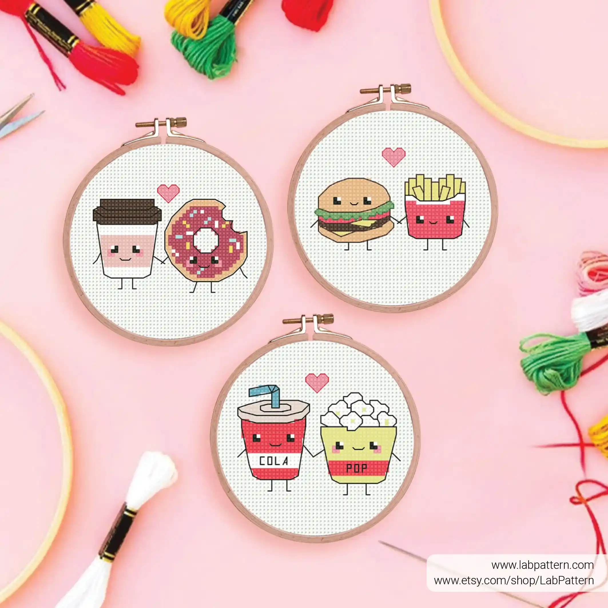 • Bundle 4 Mini Foodie Couples Love Cross stitch pattern