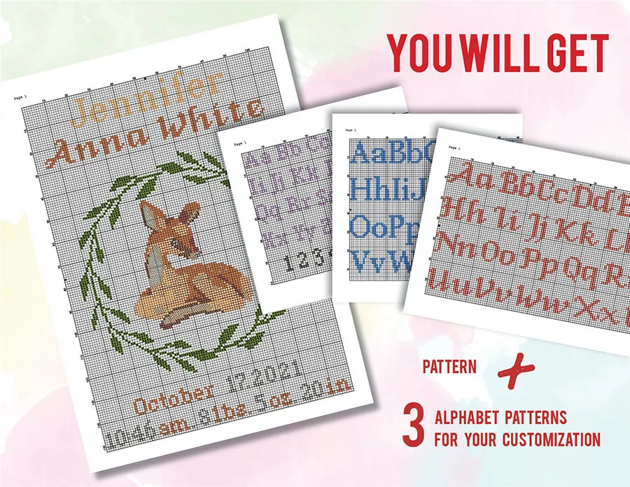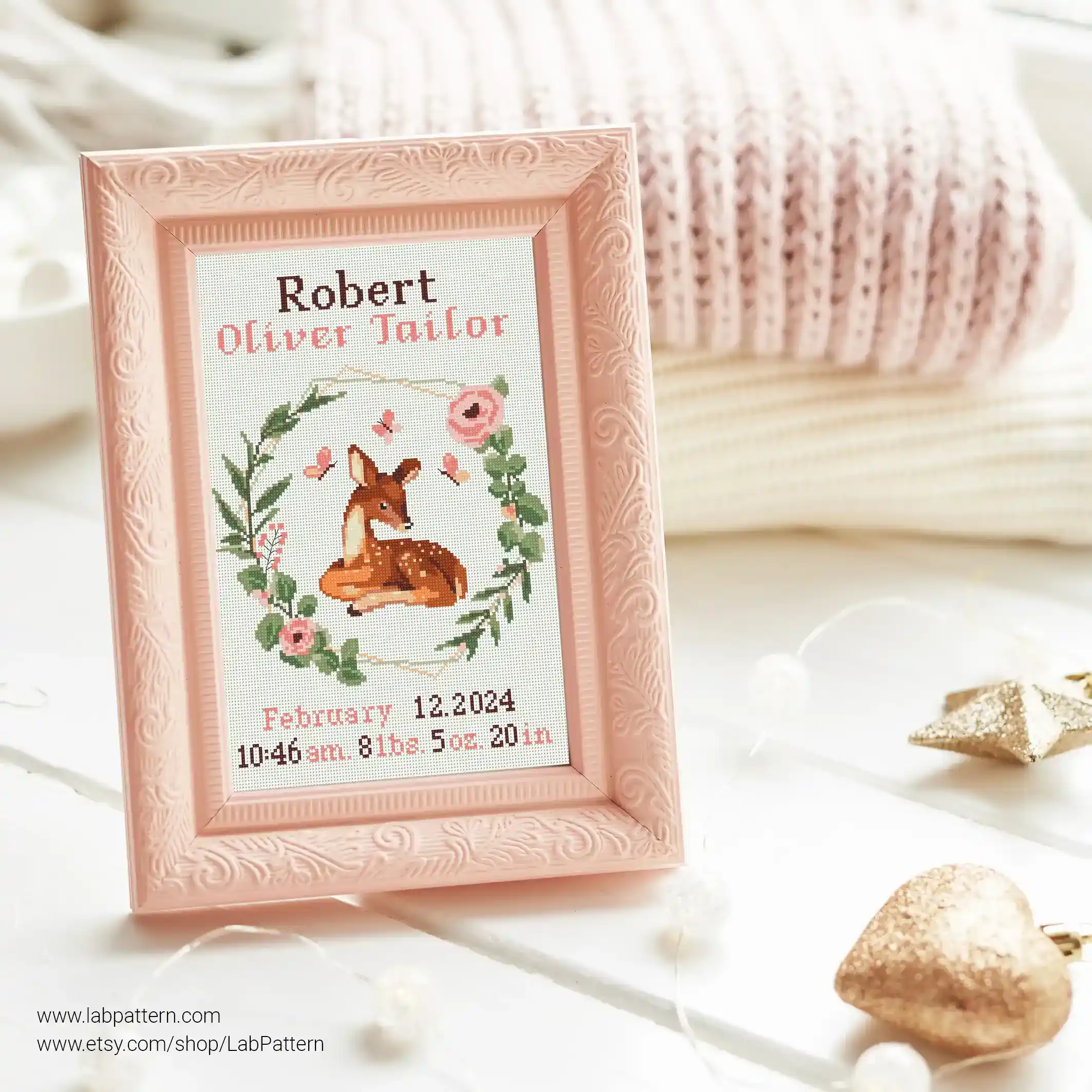Deer Birth announcement cross stitch pattern