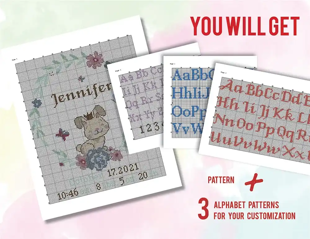 Bears Birth announcement cross stitch pattern PDF