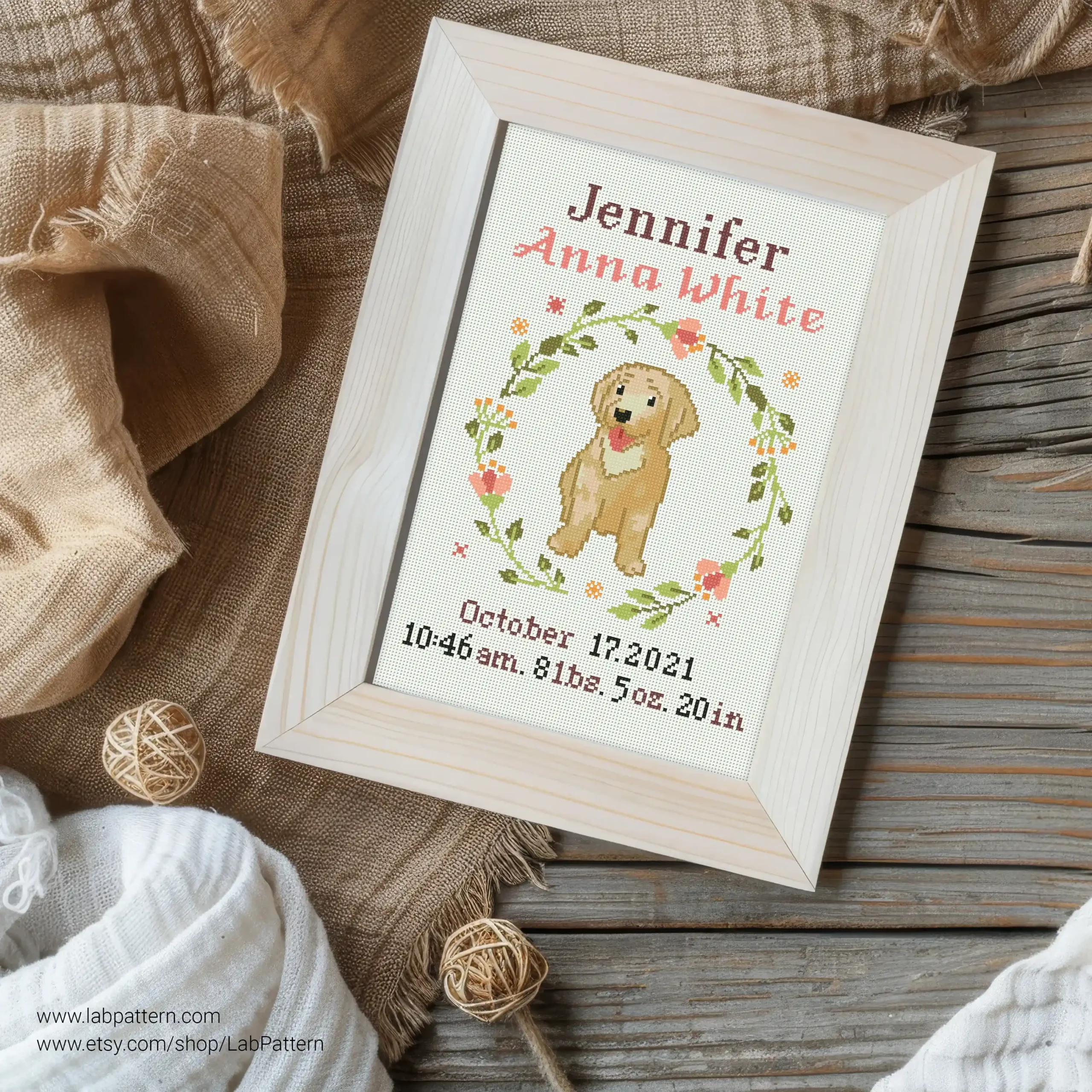 • Dog baby Birth announcement Cross stitch pattern