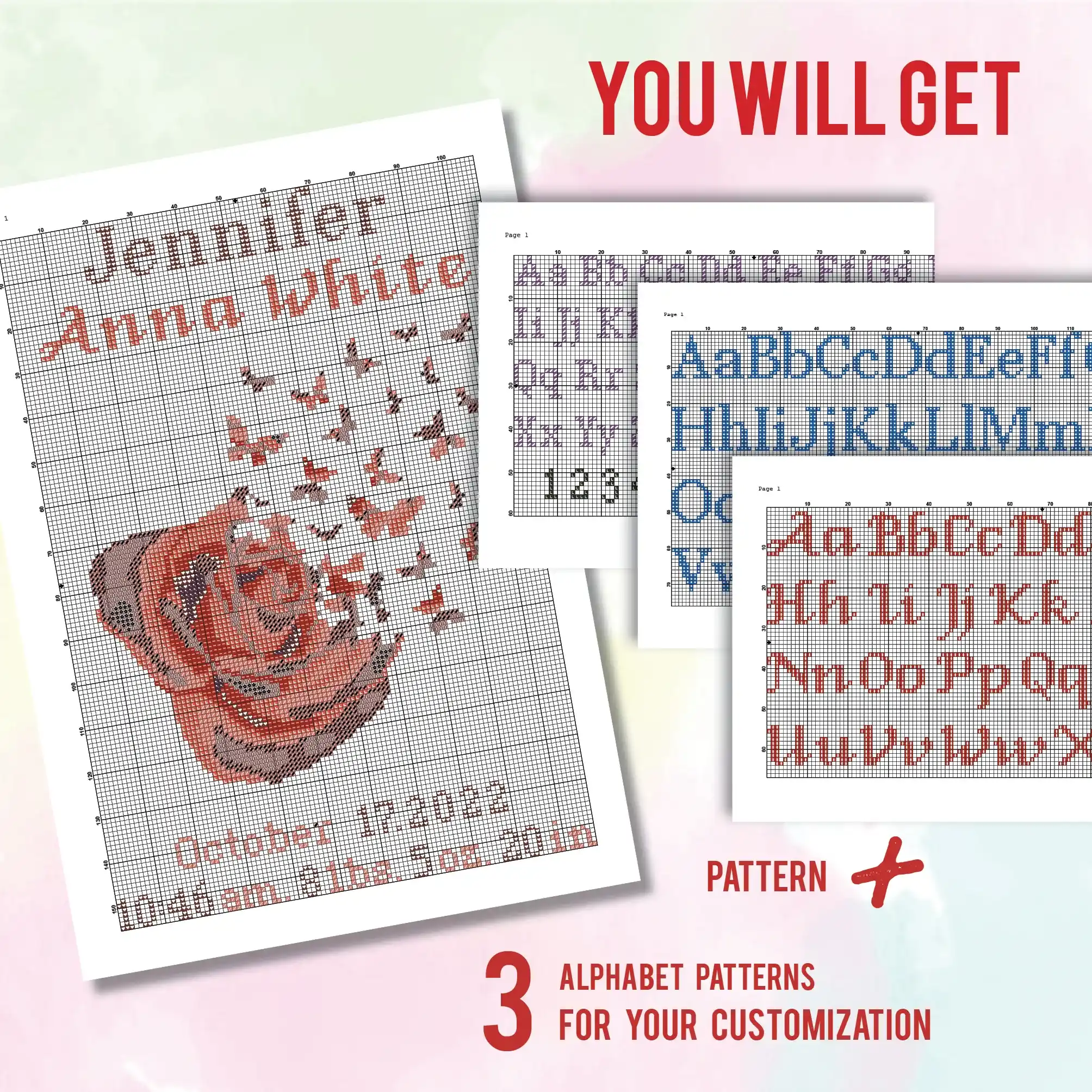 • Rose Birth announcement Cross stitch pattern
