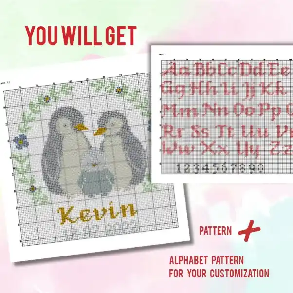 • Penguins Birth announcement Cross stitch pattern