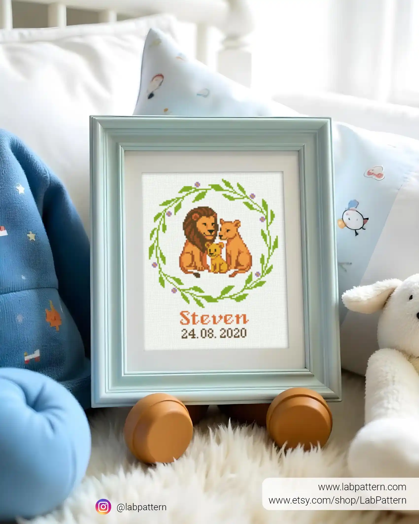 Lions Birth announcement cross stitch pattern PDF