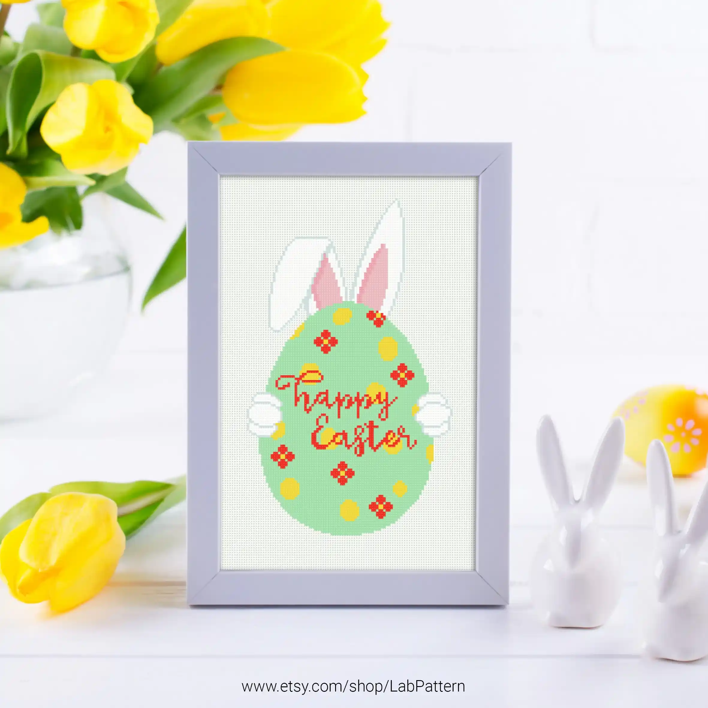 • Happy Easter Egg Rabbit Cross stitch pattern