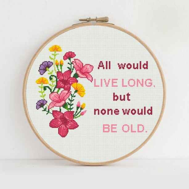 All would live long but none would be old Cross stitch pattern