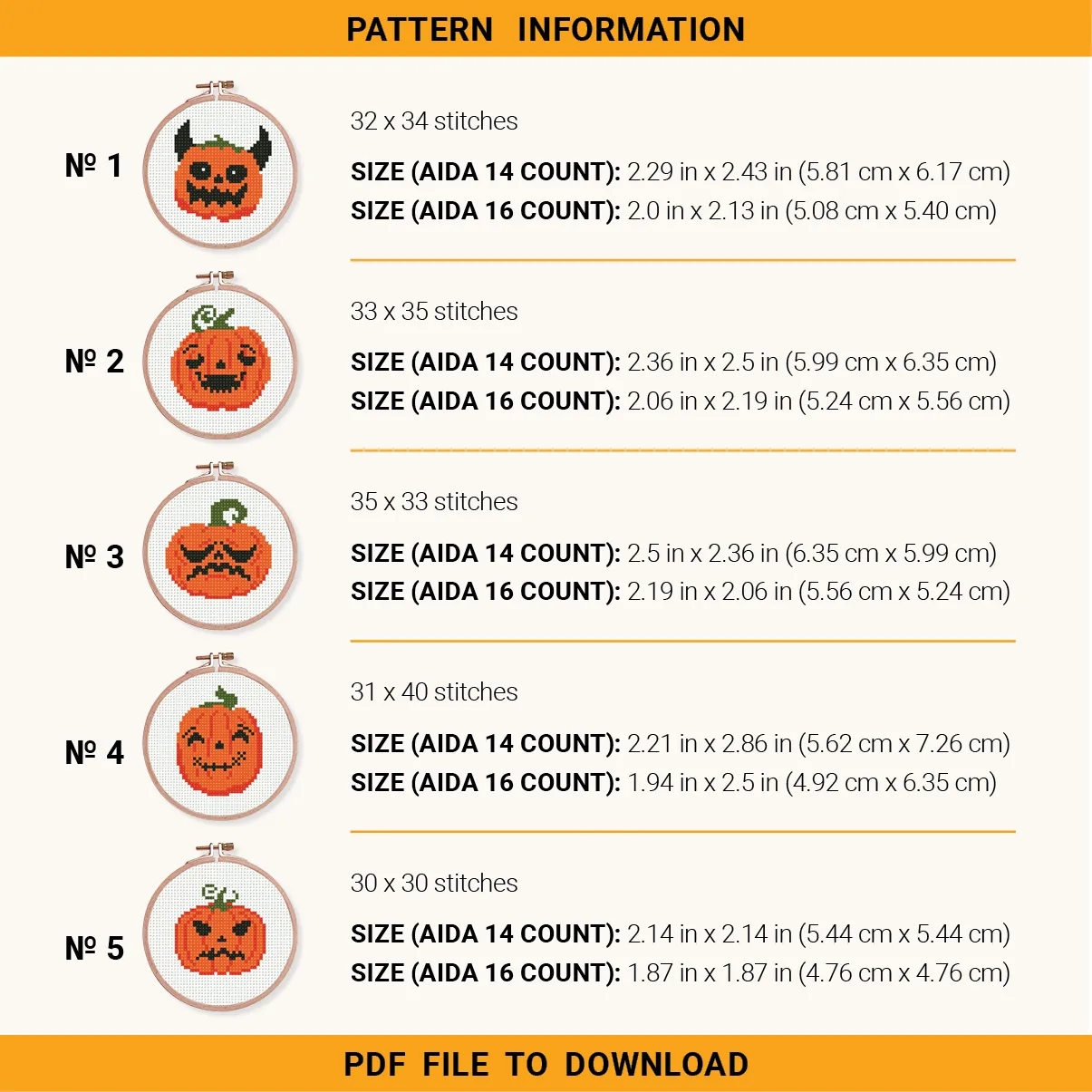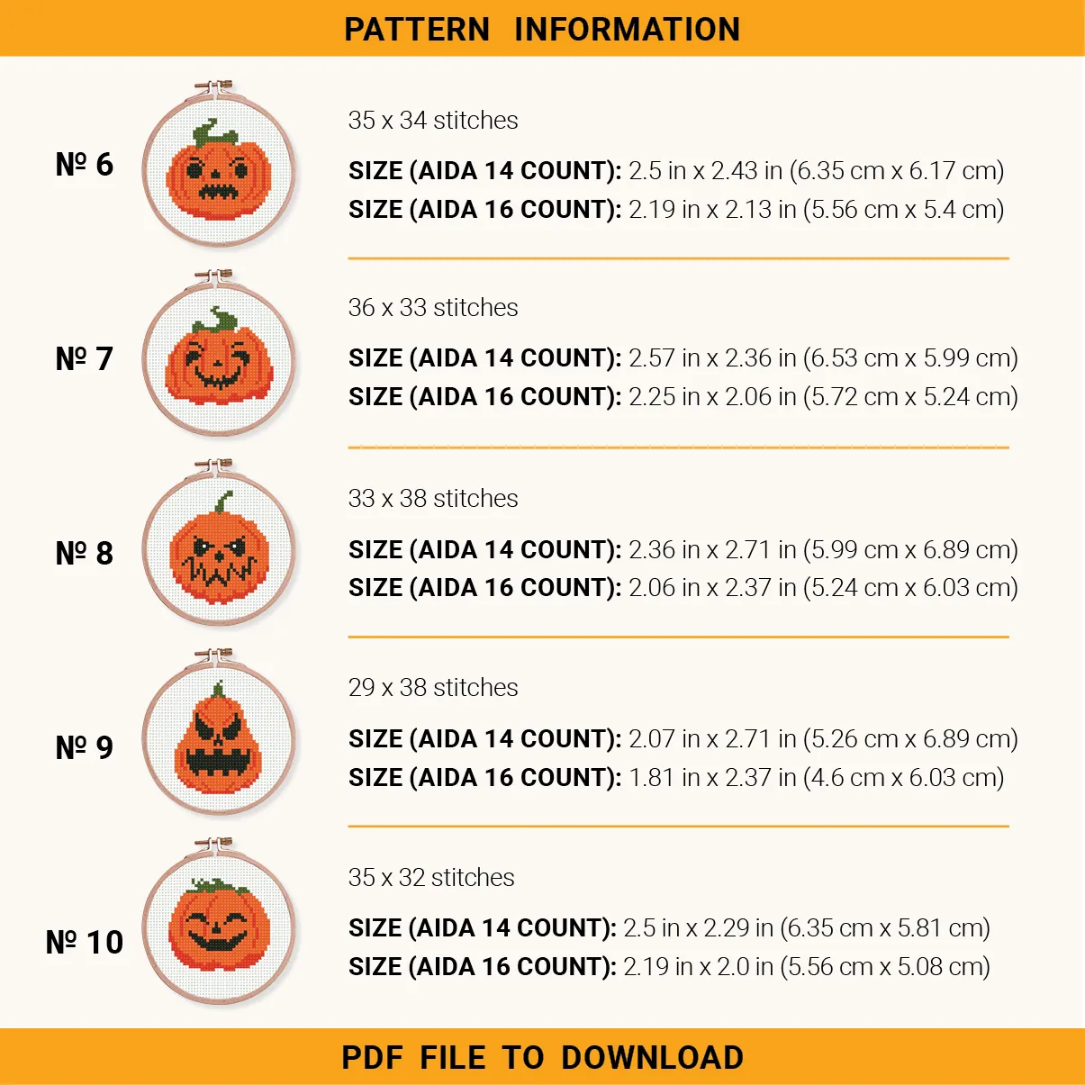 Bundle 10 mini pumpkin, Halloween Cross stitch pattern