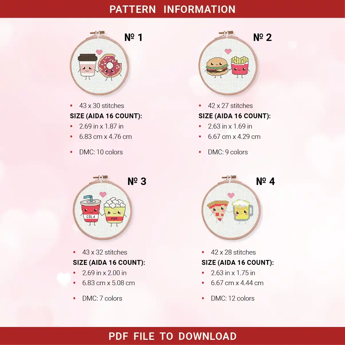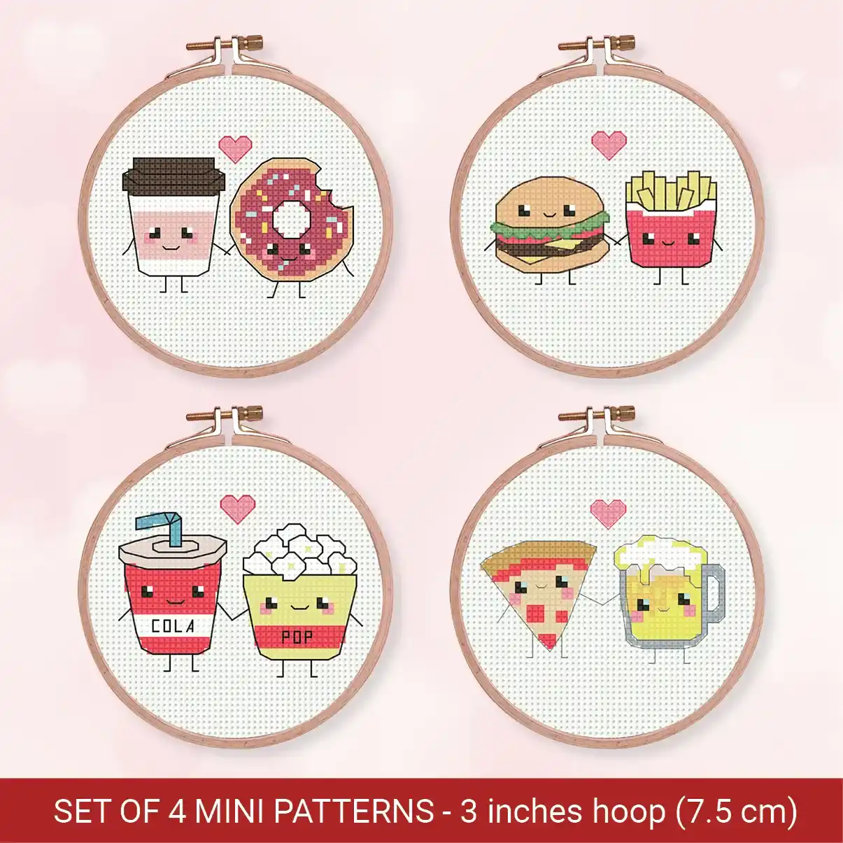 Bundle 4 Mini Foodie Couples Love Cross stitch pattern