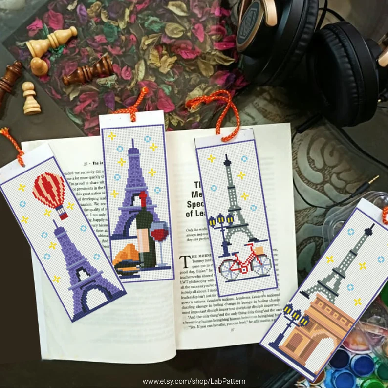 Be the first to review “Paris 4 Bookmarks Set Cross stitch pattern”