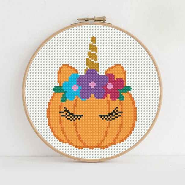 Pumpkin Unicorn Happy Halloween Cross stitch pattern