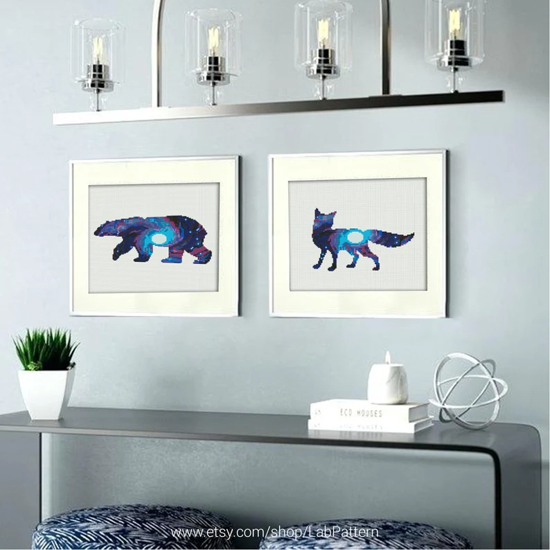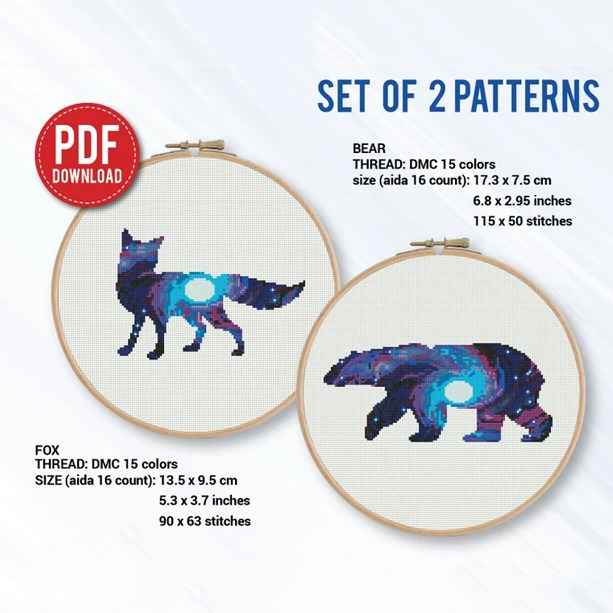 Be the first to review “Set of 2 patterns, Fox and Bear Silhouette Space Cross stitch pattern”